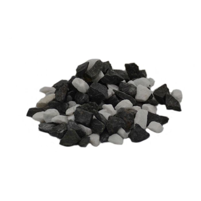 Pandasplitt bietet einen schönen Kontrast zwischen dem schwarzen und dem weißen Splitt. Es ist eine Mischung aus Basalt- und Carrarasplitt. Pandasplitt 8-12 mm ist ein sehr hartes Gestein mit einer hohen Druckfestigkeit und eignet sich daher sehr gut für hohe Belastungen, z. B. einen Parkplatz oder eine Einfahrt für Autos. Aufgrund der enormen Härte des Pandasplitts 8-12 mm kann er nicht nur für dekorative Zwecke, sondern auch als Halbverhärtung für Parkplätze oder Einfahrten verwendet werden. Pandasplitt 8-12 mm ist außerdem besonders farbecht und dies ist einer der Gründe für die Beliebtheit dieser Steine.
